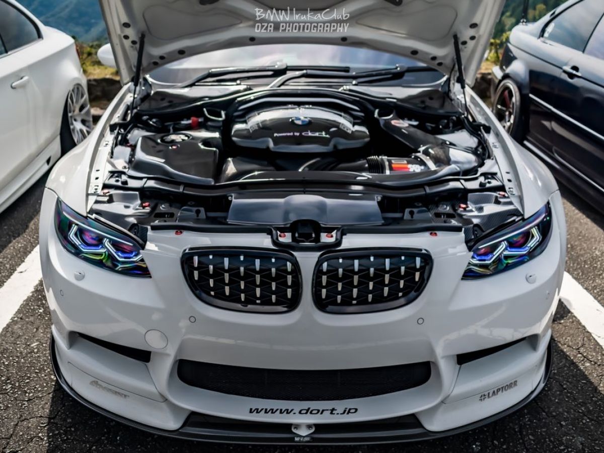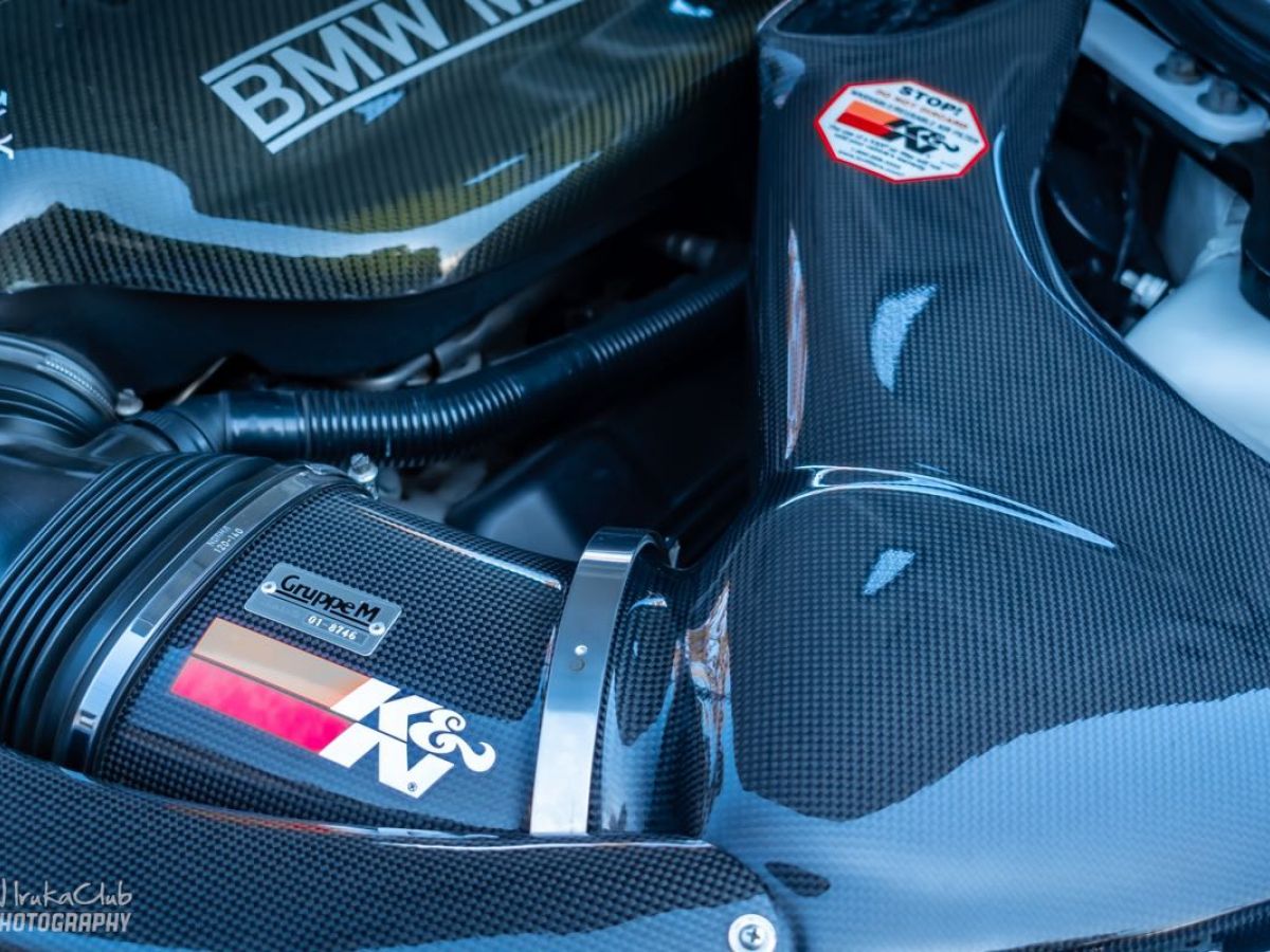 最初で最後の大排気量NAエンジンを搭載しているE90M3。チューニングの方向性はパワーよりレスポンス。脚はKW ver3、タイヤは最新neova AD09、シートはRMSを2脚と漢のサーキット仕様です。エンジンルーム内中央にはGöke Carbon Airboxが鎮座。GruppeMのRAM AIRとのカーボンの協奏がレーシーな雰囲気を醸し出す。マフラーはLAPTORR、最高な音を奏でてくれます。コンピュータは3DのDMEプログラムをインストール、レスポンスは最高に気持ち良い。 |